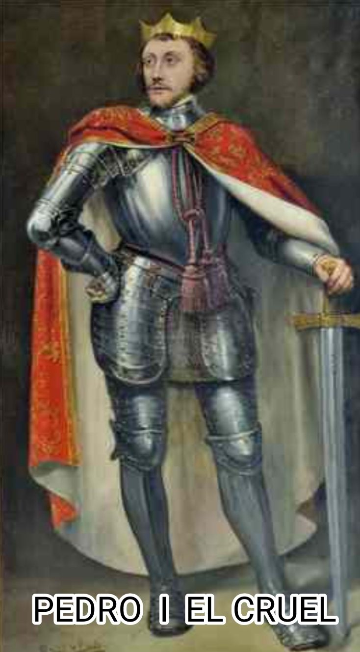 PEDRO I EL CRUEL :Pedro I de Castilla, llamado en la posterioridad «el Cruel» por sus rivales de la casa de Trastámara y los nobles castellanos, que veían menguar sus privilegios durante su reinado, y «el Justo» o «el Justiciero» por sus partidarios, fue rey de Castilla desde el 26 de marzo de 1350 hasta su asesinato.